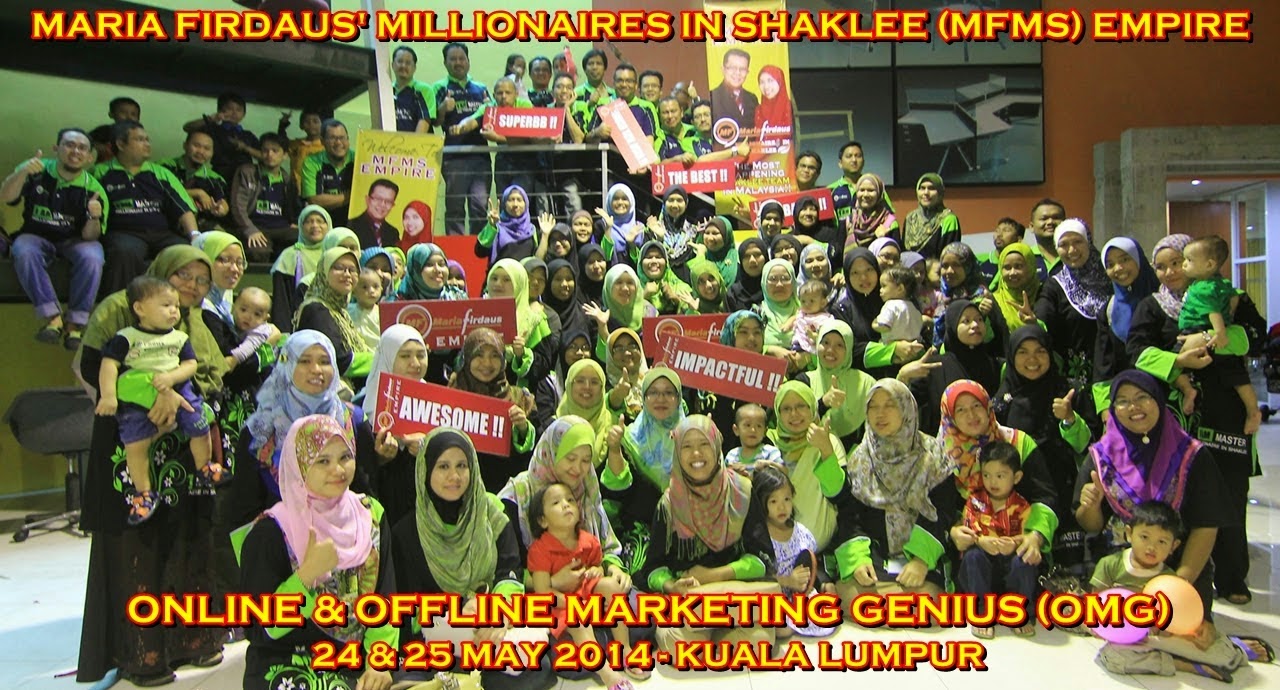 Bagi mereka yang mendaftar bersama Bonda Tun Azah, di bawah group MARIA FIRDAUS MILLIONAIRES IN SHAKLEE (MFMS) EMPIRE, anda akan dapat pelbagai support dan guide, samada sebagai PENGGUNA ataupun sebagai USAHAWAN SHAKLEE!!