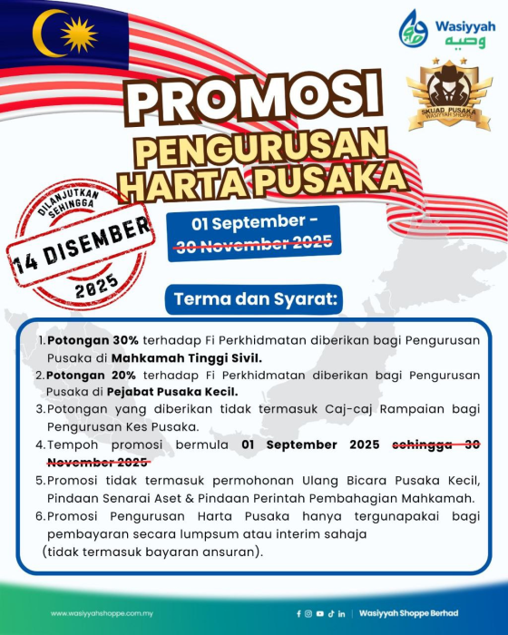 Tawaran ini sah untuk urusan di Mahkamah Tinggi dan Pejabat Pusaka Kecil. Ini adalah sebahagian daripada komitmen kami untuk membantu lebih ramai waris menyelesaikan isu pusaka dengan efisien.