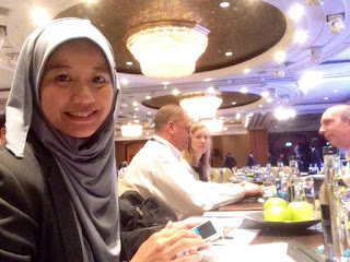 Hari ke-2, Bonda dan kengkawan lunch semeja dengan wakil negara Arab. Sembang punya sembang….time nak solat, diaorang tak tau nak solat kat mana yang dekat. So, Bonda dan kengkawan bagitau la tempat solat yang kami request pada penganjur. Alhamdulillah….dapat peluang berjemaah dengan wakil dari negara Arab.
